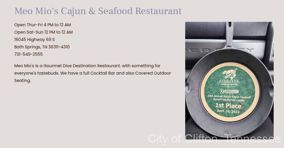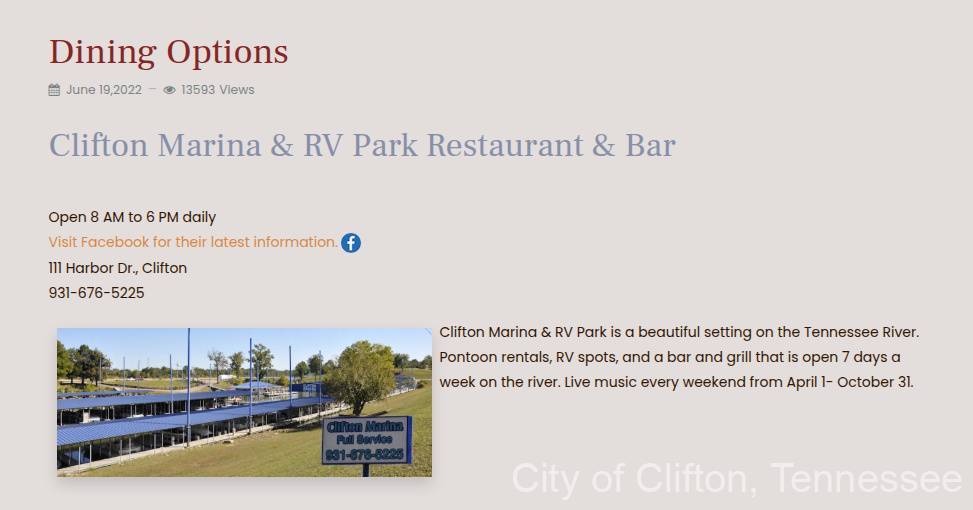 Places to Eat in Clifton, Tennessee