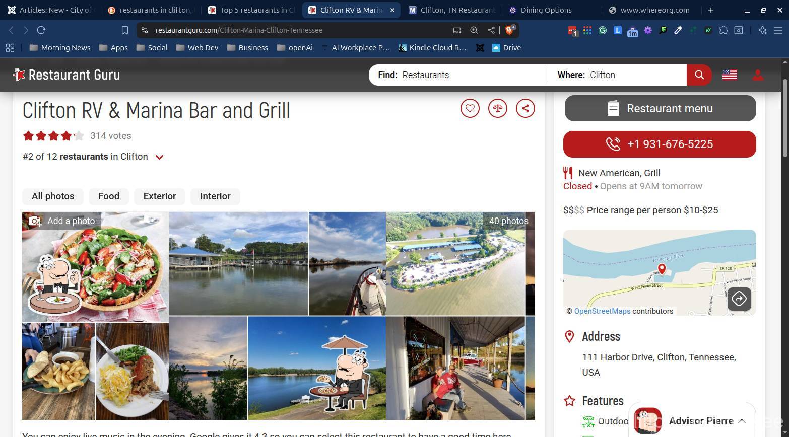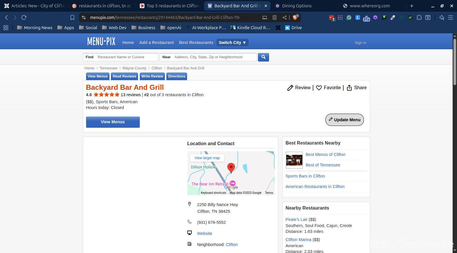 Below are snapshots of restaurant reviews in Clifton, TN.